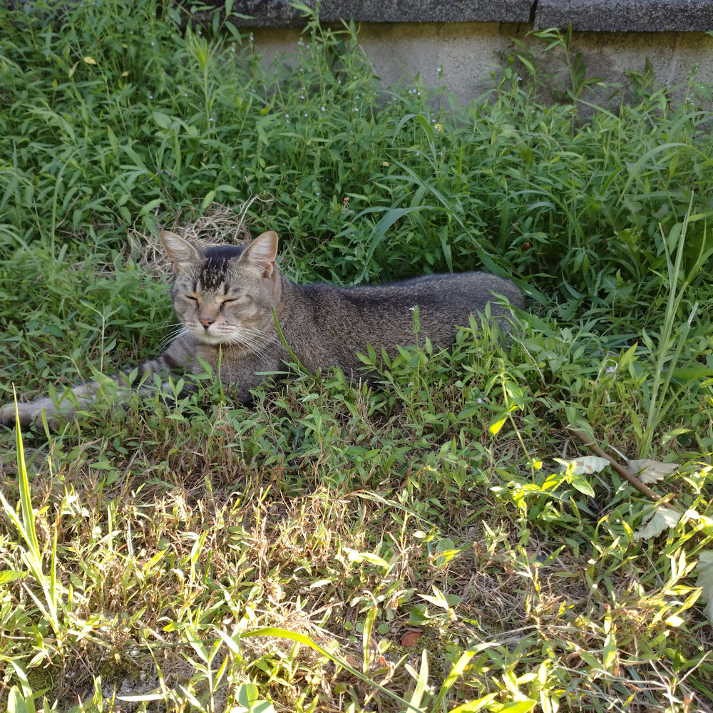 猫はこんだけ雑草茂ってるところに寝っ転がってもカユくないんですねw